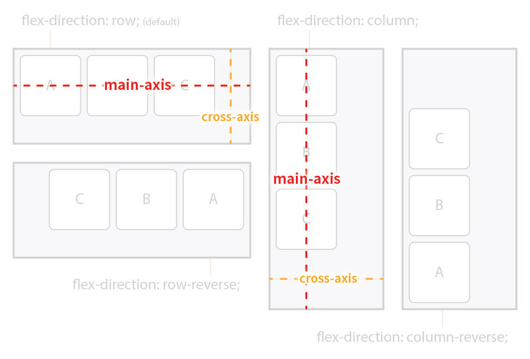 flex에는 주축과 교차축이 있고 이는 fleex container의 direction에 따라 달라진다.