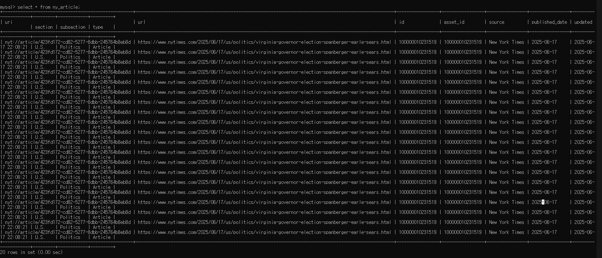 INSERT INTO ny_article (uri, url, id, asset_id, source, published_date, updated, section, subsection, type)