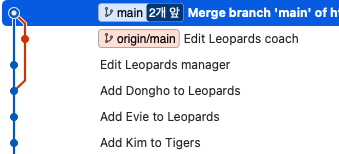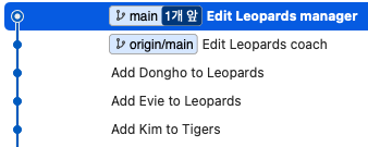 manager를 Dooli로 수정Edit Leopards managercoach를 Lupi로 수정 - (동료들이 했다고 가정)Edit Leopards coachGitHub 에서 동료들이 작업한 것은