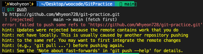 현재 나는 GitHub으로 내 커밋을push할 것도 있고, GiHuB으로부터pull할 것도 있는 상태
