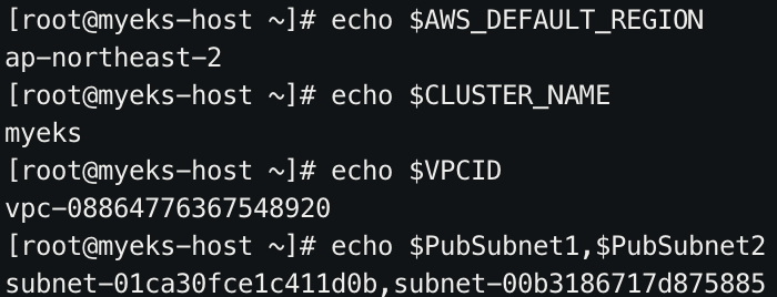 # EKS를 배포할 VPC의 서브넷 정보를 환경변수로 설정