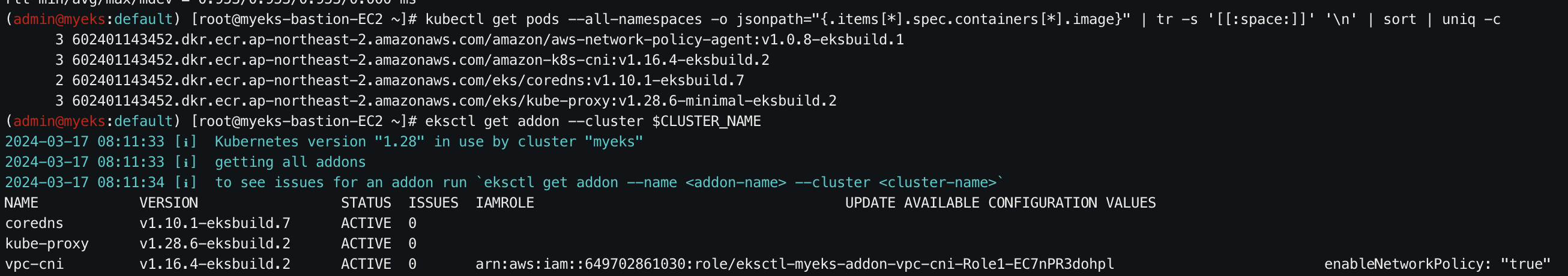 EKS -> 클러스터 선택 -> 추가기능 탭에서 Addon을 확인할 수 있습니다.