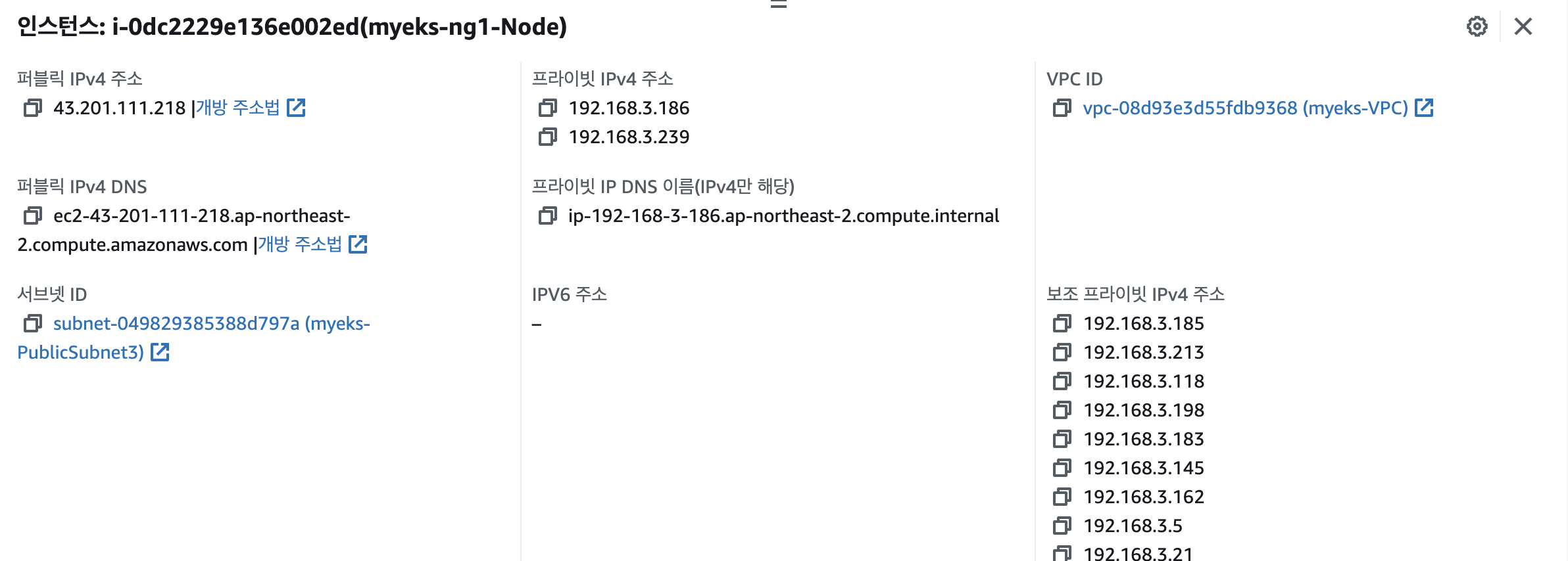 파드와 노드 각각에서 외부와 통신하는 공인 IP 주소가 동일합니다.