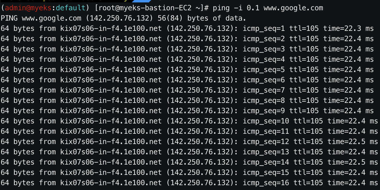 파드에 접속하여 파드 간 통신을 확인합니다.