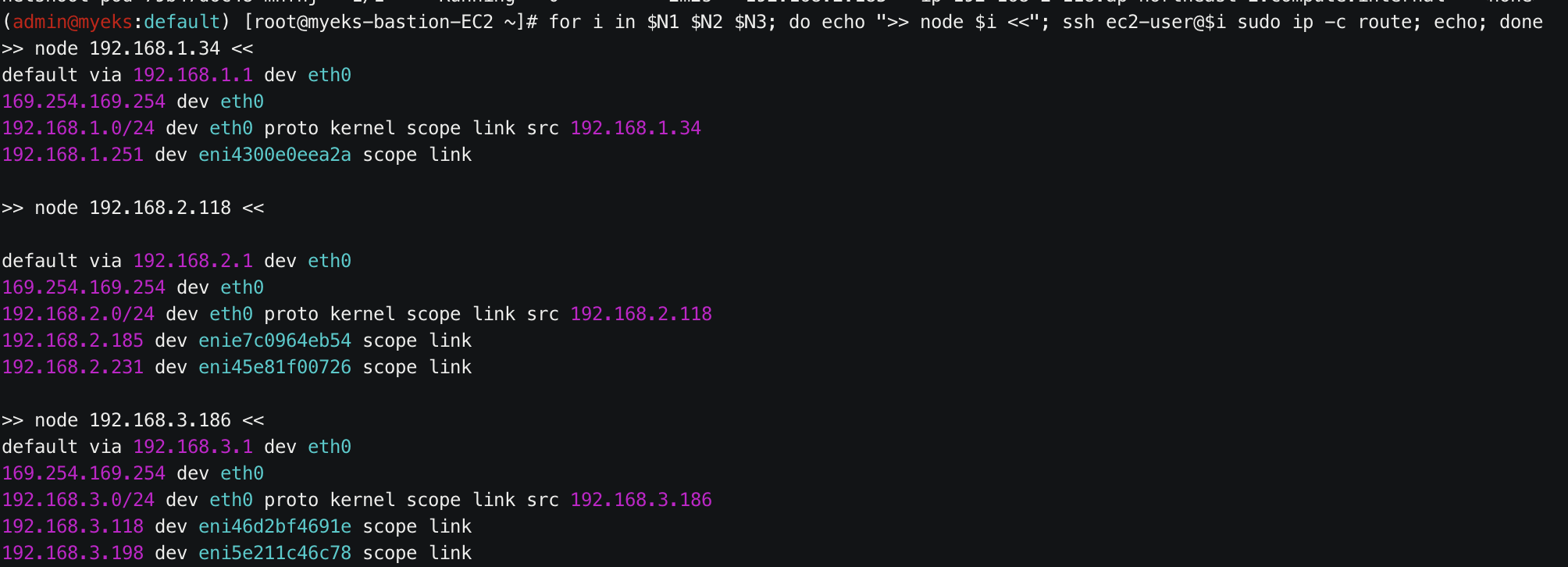 for i in $N1 $N2 $N3; do echo ">> node $i <<"; ssh ec2-user@$i tree /var/log/aws-routed-eni; echo; done