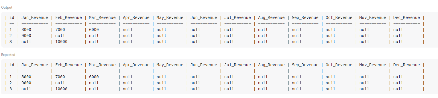 MAX(CASE WHEN month = 'Apr' THEN revenue ELSE null END) AS 'Apr_Revenue',