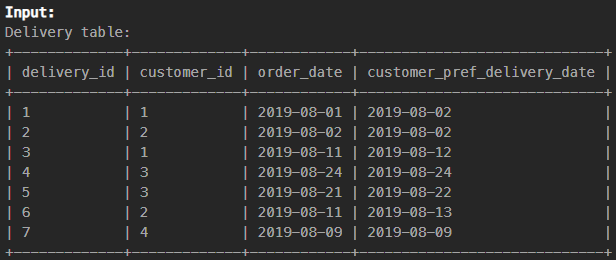 - Delivery 테이블에서 각 고객(customer_id)의 첫 번째 주문(min(order_date)을 필터링