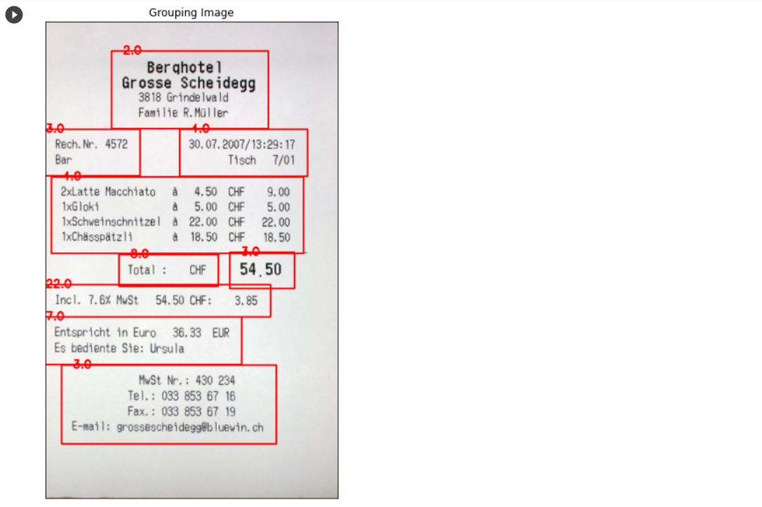 cv2.putText(receipt_grouping, "".join(str(ar)), (x, y - 15), cv2.FONT_HERSHEY_SIMPLEX, 0.65, color, 2)