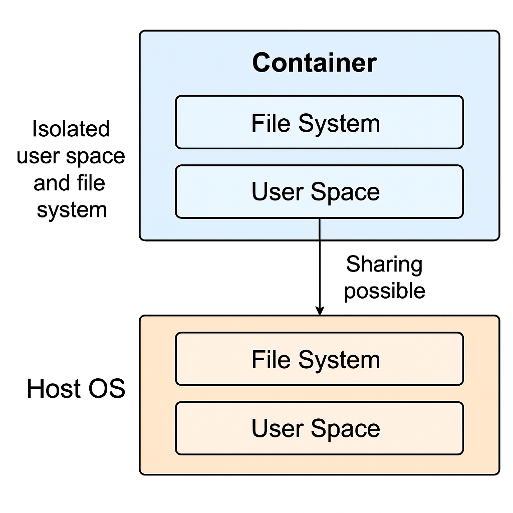 문제의 원인은 호스트 OS와 컨테이너의 유저 공간 분리. 도커 컨테이너는 자체적인 유저 공간을 가짐. 호스트 OS의 커널은 공유되지만, 유저 공간은 격리되어 있음.
