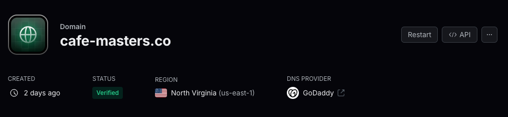 DNS Provider에서 레코드를 모두 추가하고 Resend로 돌아와서 Verify 버튼을 눌러줍니다. 그럼 STATUS가 주황색으로 Verifying으로 변경된 다음 거의 한 1~2분만에 Verified도 바뀔 겁니다. 인증이 완료되면 SMTP 설정이 거의 완료된거나 다름 없는 셈입니다.