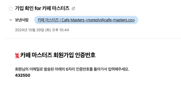 센더 이메일은 인증번호를 담은 메일을 발송할 때 발송자 이메일을 설정하는 곳입니다.