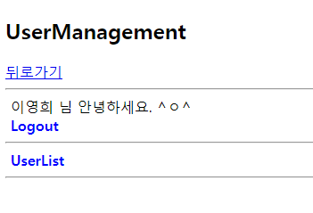 2. UserManagement.jsp에 ㅁㅁㅁ님 안녕하세요. 문구 추가