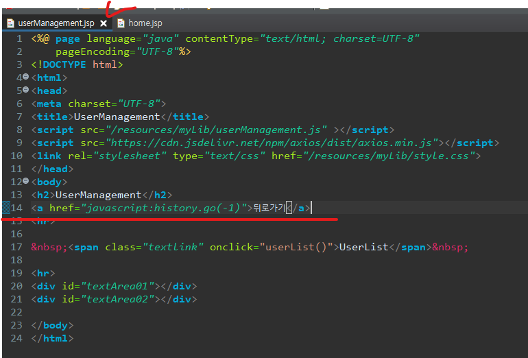 2. Usermanagement.jsp에 다시 입력하세요. 문구 추가