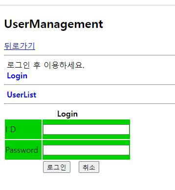 UserManagement.jsp의 화면에서 실습해보면 Login을 클릭 시 form이 나타나고