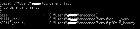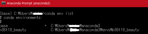 설치 후 conda env list로 확인하면 만들어진 게 보인다.