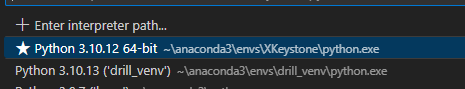 나는 drill_venv라는 이름, 파이썬은 3.10을 설치하려고 한다.