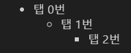 <Tab키>의 횟수와 특수문자로 구현. 특수문자는 *, +, - 3개 중 어떤 걸 사용해도 무방.