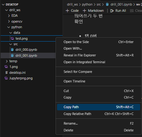 즉, 현재 drill_ws 폴더의 src 폴더에서 ipynb 코드를 작성 중이다.