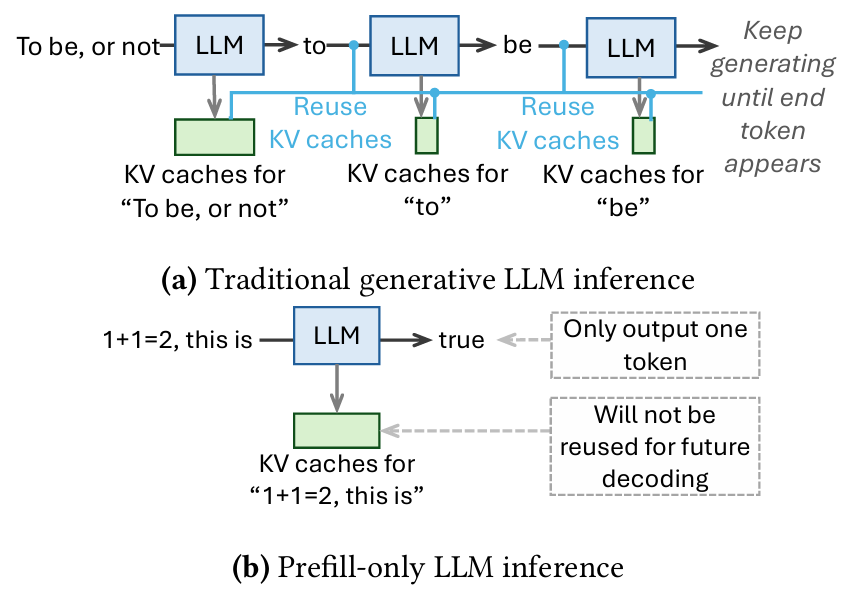 이러한 종류의 LLM이 Prefill-only 모델 중 하나로, 기존에 가장 시간을 많이 잡아먹던 decoding을 최적화 하는 것이 아닌 다른 방식이 최적화가 필요할 것이다. 그래서 오늘은 Prefill-only 모델을 최적화 할 수 있는 ML System 논문을 가져왔다. 이 논문의 경우, SOSP'25에 LMPrefill이라는 이름으로 나온 것으로 보이는데 accept이 된건지는 모르겠다.