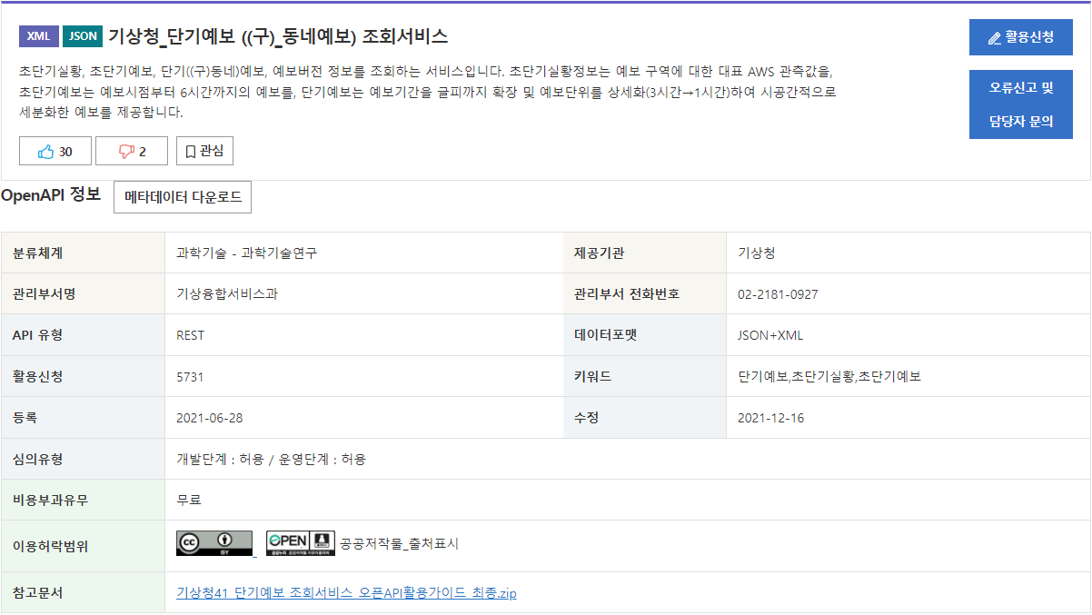 결과값이 나오는데 해당 값들이 무엇을 의미하는것인지는 인증키 부분에 위에 있는 참고문서(활용가이드 zip)파일을 열어 워드 파일에 상세 명세등이 적혀있다.