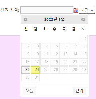 <span>날짜 선택: <input type="text" id="datepicker" disabled="disabled" class="emptyCheck" title="날짜"></span>