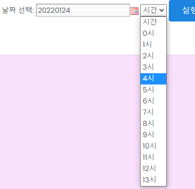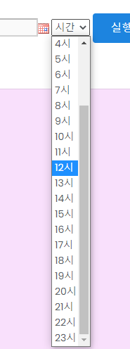 • 시간 select box는 타임리프를 이용하여 0부터 23까지의 숫자를 증가시키면서 option box에 입력하는 방식으로 설정