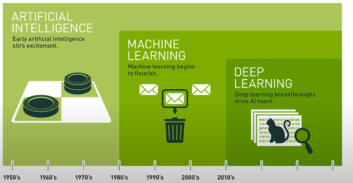 인공지능이 가장 상위의 개념이며, 딥러닝은 기계학습의 한 종류임.