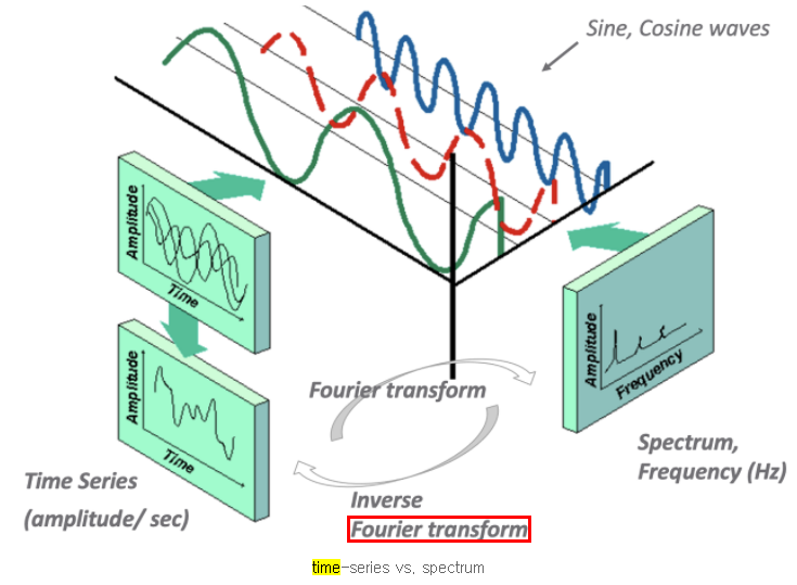 시계열 데이터는 다음과 같이 시간 영역과 주파수 영역으로 나누어 분석할 수 있습니다.