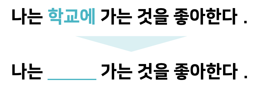 다음 그림과 같이 임의로 일정 윈도우(window) 내에서 단어를 교환하는 것입니다. 예를 들어 다음 그림과 같이 ‘학교에’라는 단어를 앞뒤 3단어까지의 범위 내에서 임의의 단어를 선택하여 교환하는 것입니다.