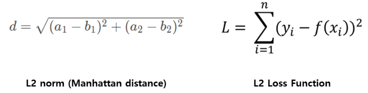 또한, L2 loss는 실제값과 예측값의 제곱합으로 나타납니다.