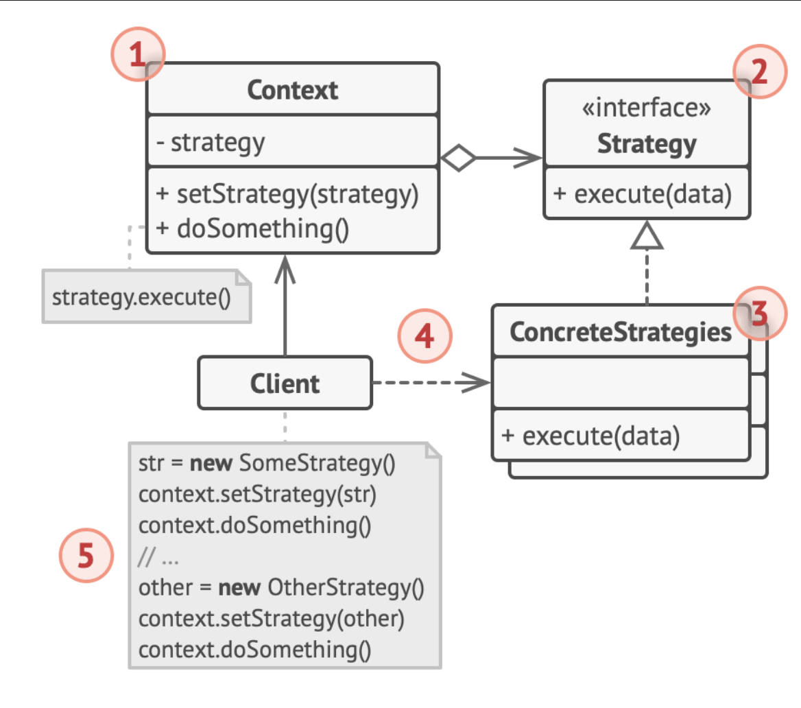 3. 구상 전략들은 콘텍스트가 사용하는 알고리즘의 다양한 변형들을 구현합니다.