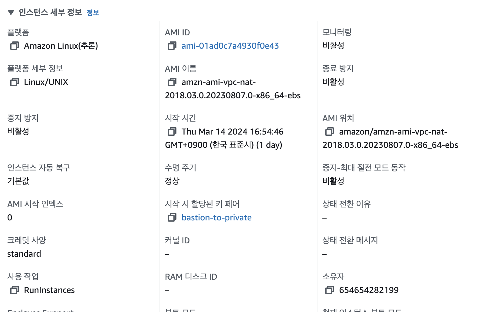 이미지-> amazon/amzn-ami-vpc-nat-2018.03.0.20230807.0-x86_64-ebs