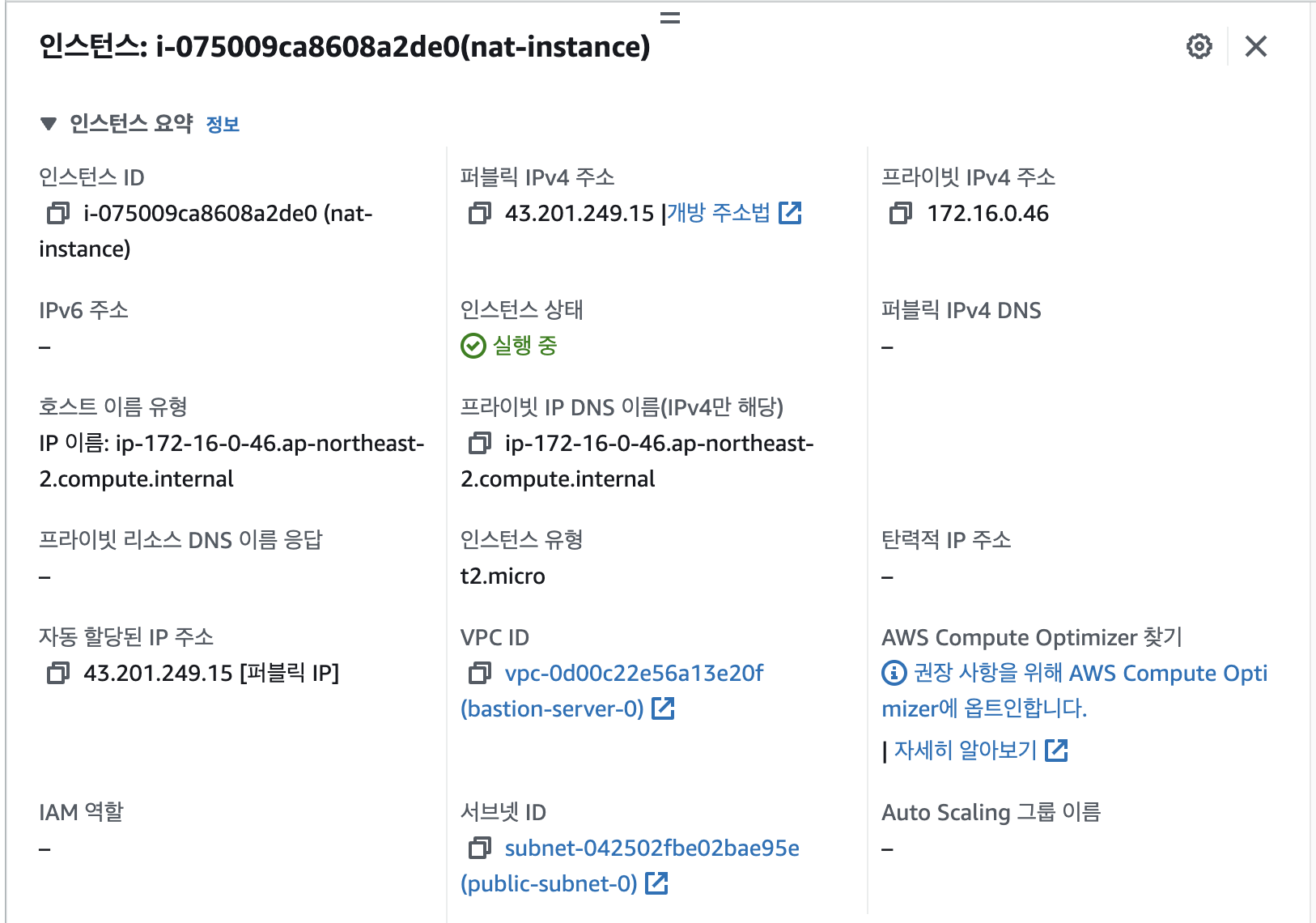 서브넷은 public-subnet(bastion 인스턴스가있는 subnet과 동일)