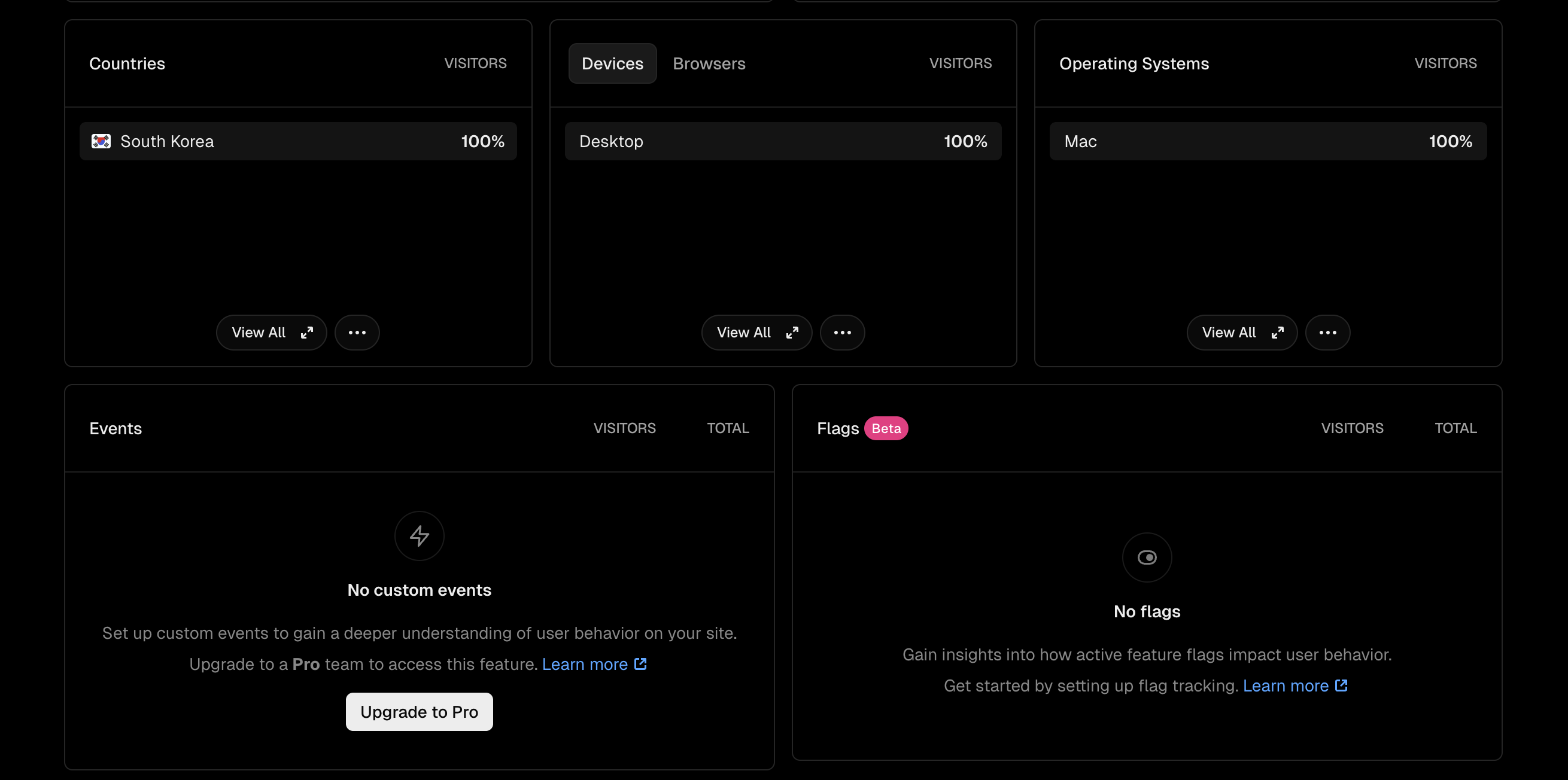 외부 연동 없이 Vercel 대시보드에서 바로 확인 가능.
