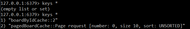 조회하기 전에는 key가 비어있었지만, 조회 후에는 key가 Redis