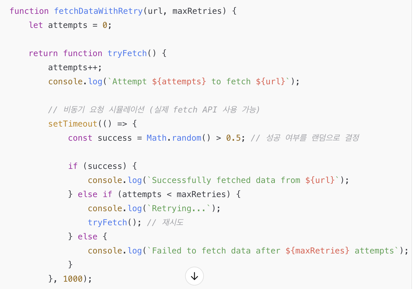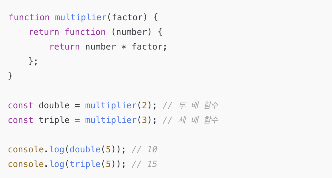이 예시에서는 내부 함수를 아예 익명 함수로 return에 넣어줬다.