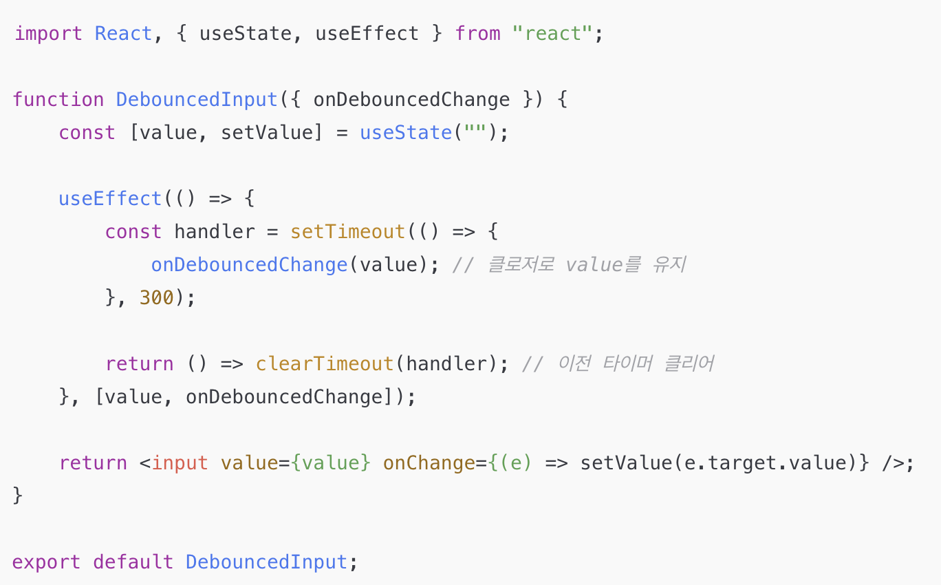 DebouncedInput이라는 컴포넌트 함수 내에서 useEffect 내 함수를 정의 할 때 외부 변수인 value를 참조한다.