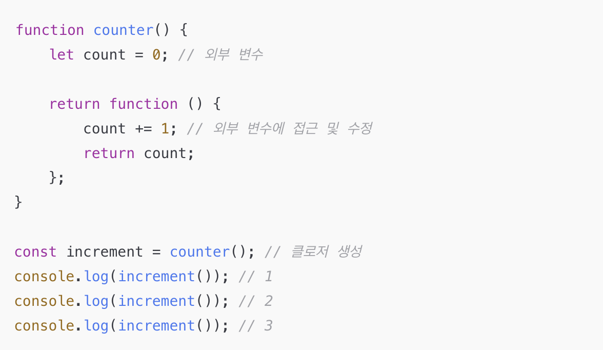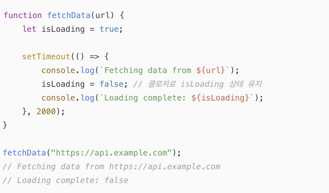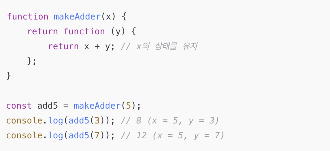 이 예시는 클로저의 조건을 만족하는 코드 예시와 같음