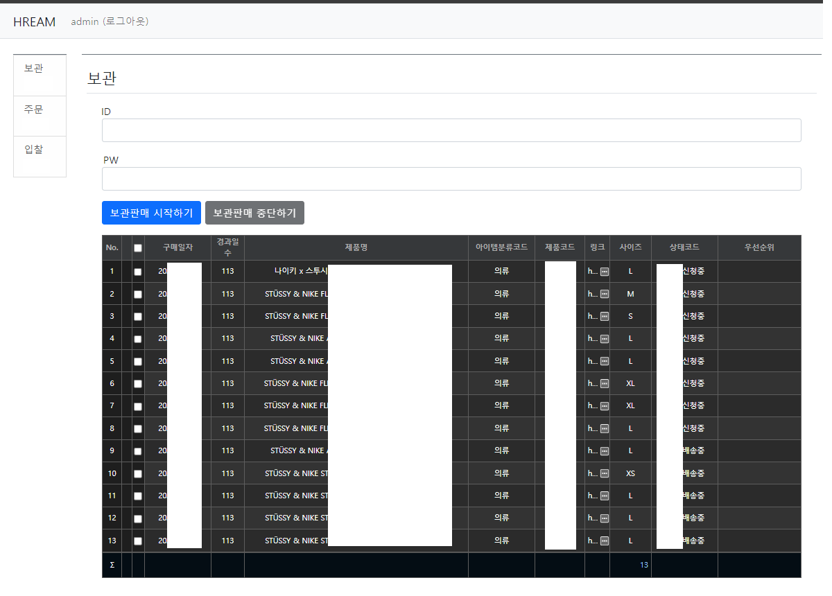 시작하기 버튼을 클릭하면 내가 저장한 LIST를 DB에서 select 해와 그리드에 매핑 시킨 후 해당 데이터를 셀레니움을 활용하여 지속적인 요청을 반복하며 사용자가 원하는 순간까지 진행한다.