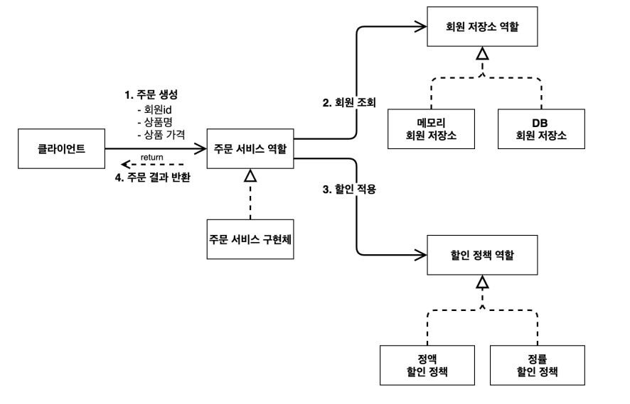 • 클라이언트는 대상의 역할(인터페이스)만 알면 된다.