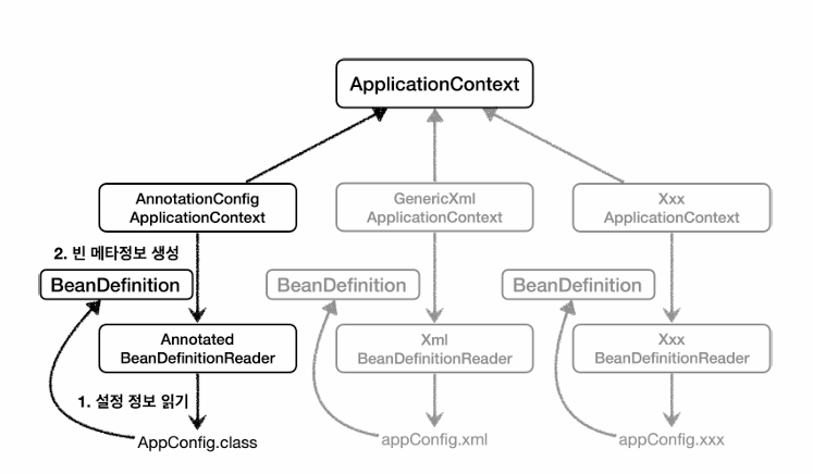 스프링 컨테이너는 어노테이션 기반 자바 코드 설정 방식 외에도 다양한 컨테이너 생성이 가능하다. 어떻게 스프링은 이런 다양한 설정을 제공할 수 있을까?