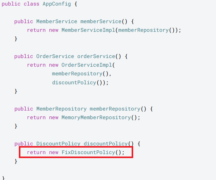 //private final DiscountPolicy discountPolicy = new RateDiscountPolicy();