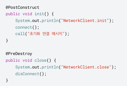 왠만하면 빈 라이프사이클을 조정할때에는 @PostConstruct, @PreDestroy 애노테이션을 사용하자.