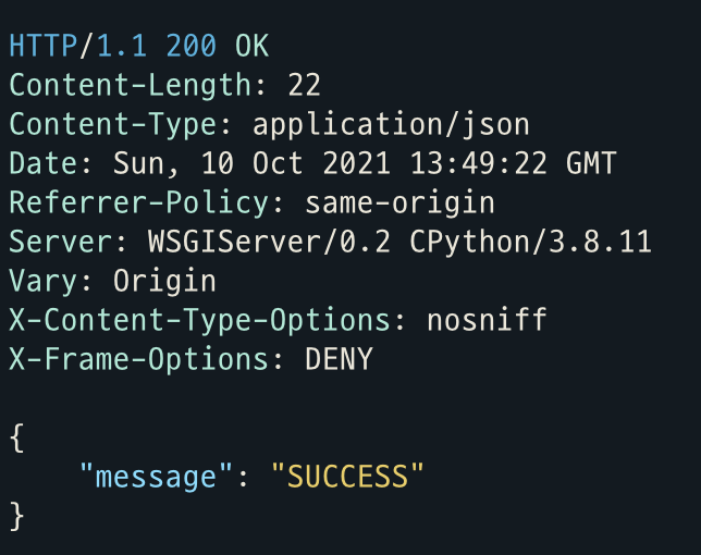 - 로그인이 성공하면 {"message": "SUCCESS"}, status code 200을 반환합니다.