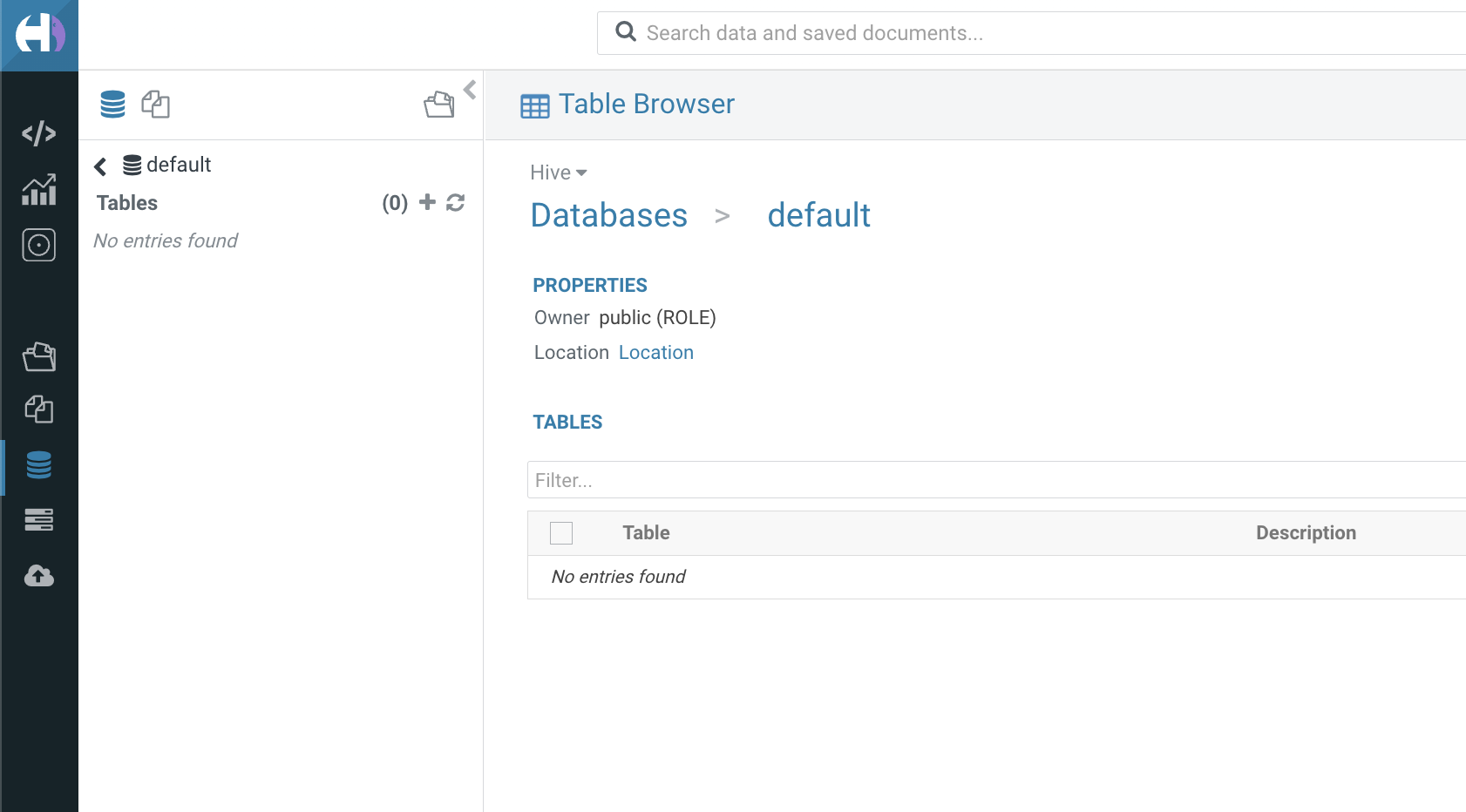 현재 hue의 데이터베이스에는 어떤 테이블도 없습니다.