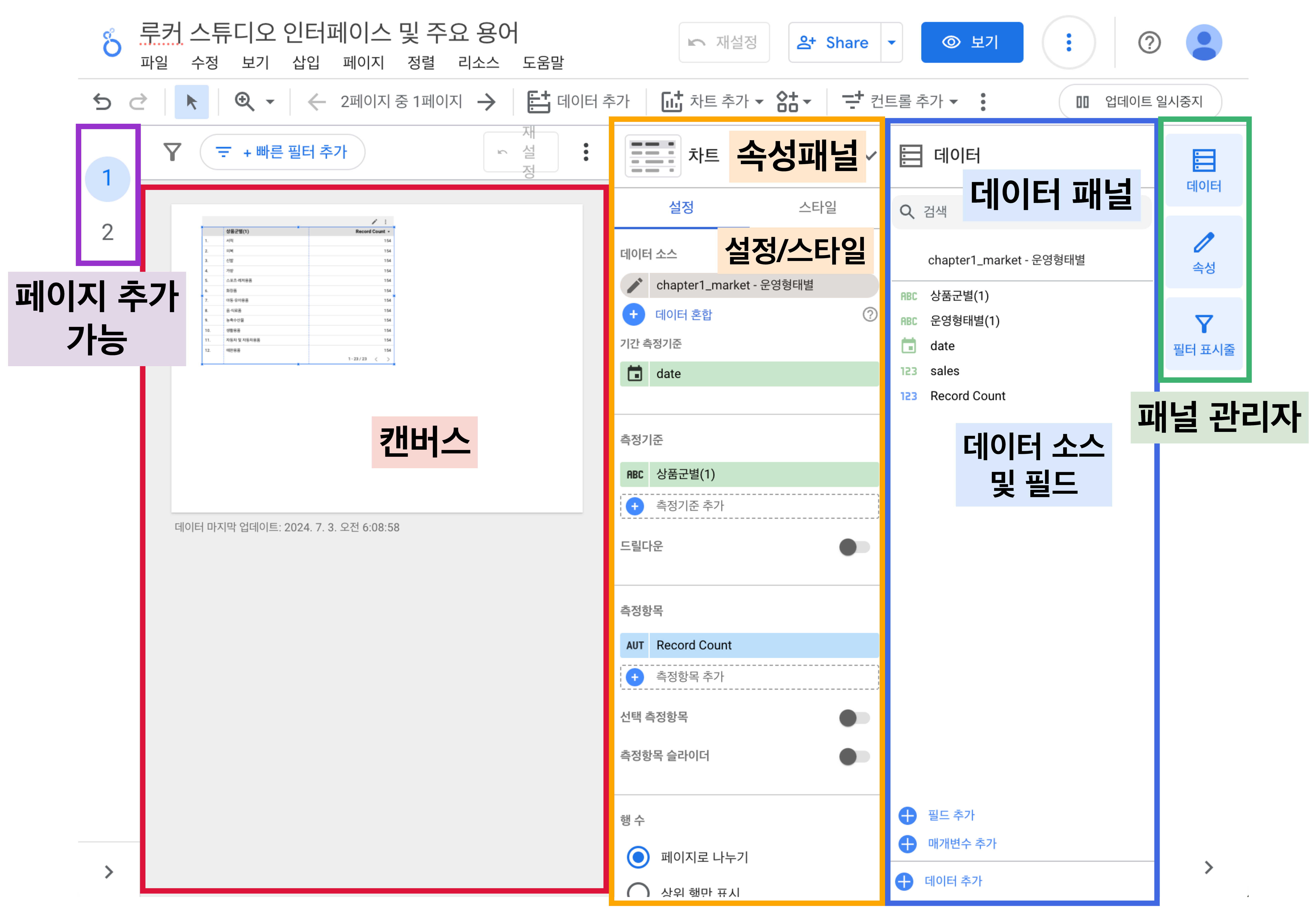 측정기준과 측정항목(필드로 통칭)에는 차트에 표시되거나 보고서의 컨트롤에 의해 처리된 데이터가 포함됨