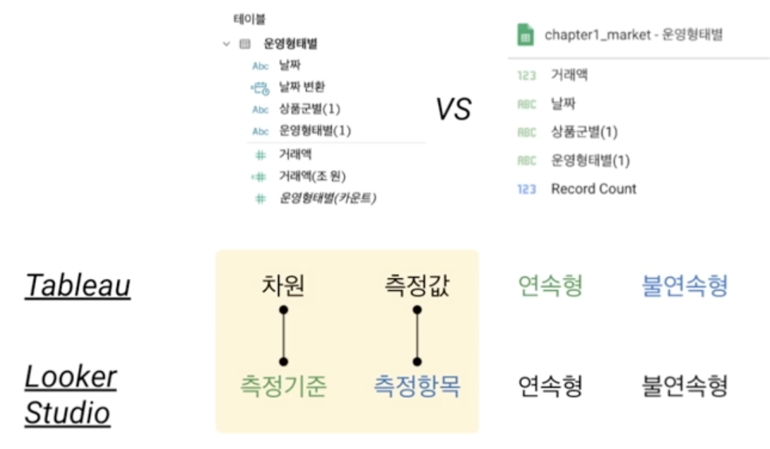 - 측정기준은 이름, 설명, 색상, 크기, 기타 데이터 특성 등 데이터의 카테고리