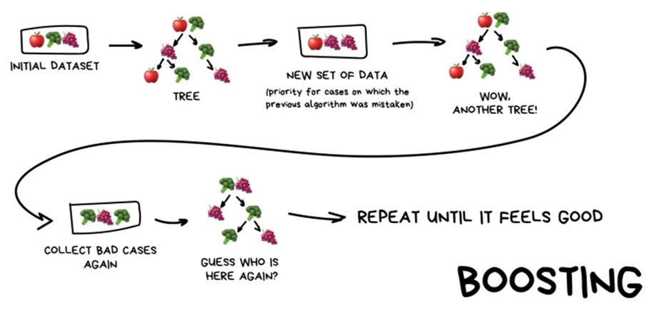 - 처음에 못 맞춘 데이터에 대해서 우선순위를 부여해 학습확률을 높여서 맞출 때까지 수행