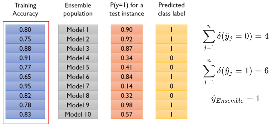 y^Ensemble=argimax(j=1∑nδ(y^j=i)),i∈{0,1}