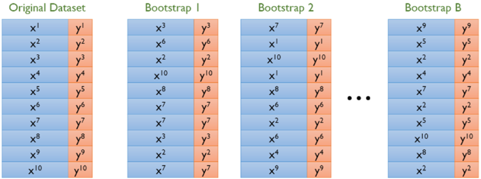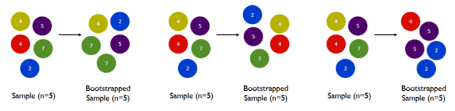 - Bootstrap : 표본에서 추가적으로 표본을 복원 추출하고 각 표본에 대한 통계량을 다시 계산하는 것